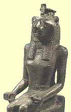 As a lion-god and patron, he was also considered the son of Re and of Bast, the feline war goddess and patron of Lower Egypt as well as Sekhmet, the lioness war goddess and patron of Upper Egypt. Since his cult was centred in Per-Bast (Bubastis in Greek) or in Taremu (Leontopolis in Greek), he was more known as the son of Bast. As he became a tutelary deity of Egypt, his father was said to be the chief male deity at the time - either Ptah, or Ra who had by this time already merged with Atum into Atum-Ra. In his role of son of Ra, Maahes fought the serpent Apep during Ra's daily night voyage.