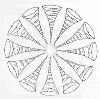 In Hindu cosmology the surface of the Earth is represented as a square, the most fundamental of all Hindu forms. The earth is represented as four cornered with reference to the horizon's relationship with sunrise and sunset, the north and south direction. The Earth is thus called 'Caturbhrsti (four-cornered)' and is represented in the symbolic form of the Prithvi Mandala. The astrological charts or horoscopes (Rasi, Navamsa, etc) also represent in a square plan the ecliptic - the positions of the sun, moon, planets, and zodiacal constellations with reference to the native's place and time of birth. The Vaastu Purusha Mandala is the metaphysical plan of a building, temple, or site that incorporates the course of the heavenly bodies and supernatural forces. The square is the box. We experience 'inside the box. 4 goes to 4th dimension or time. We experience through the spiraling patterns of sacred geometry in the alchemy of timem moving away from the central source, and then returning.