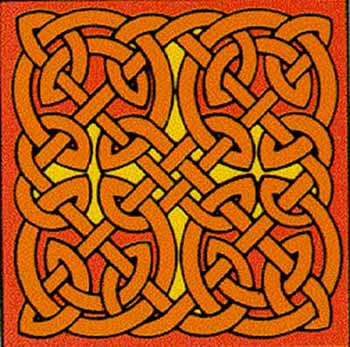 Knot designs are commonly seen in traditional Celticart. Like the mandala, Celtic knot designs are by definition rich in symmetries. Knots are commonly shown as a single cord woven in and out of itself to form a symmetrical design.