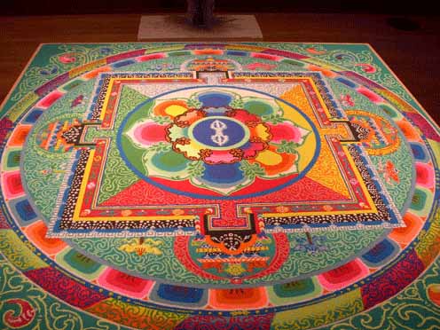 To symbolize impermanence (a central teaching of Buddhism), after days or weeks of creating the intricate pattern, the sand is brushed together and is usually placed in a body of running water to spread the blessings of the Mandala.