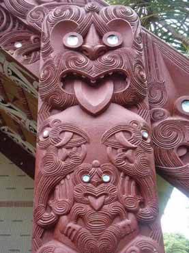 Tiki are anthropomorphic ornaments representing spiritual beings. Many times they have some kind of deformation, like only 3 fingers and they can be both positive and negative towards mankind. Much of the Maori religion remains intact and many rituals associated with traditional visual arts and traditional music are still carried out with strong ties between songs and magic still remaining.
