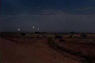 They may appear at any time of night, typically south of Route 90, five to fifteen miles east of Marfa, at unpredictable directions and apparent distances. They can persist from a fraction of a second to several hours. There is evidently no connection between appearances of the Marfa Lights and anything else besides night time hours.
