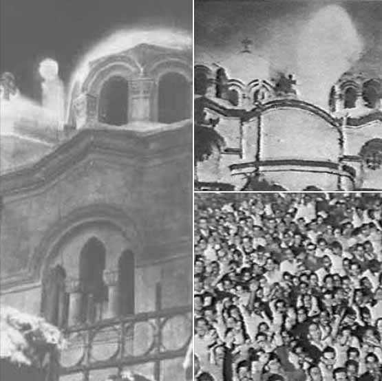 Our Lady of Zeitoun, Also known simply as El-Zeitoun, Zeitun or rarely Our Lady of Light, was a mass Marian apparition that occurred in the Zeitoun district of Cairo, Egypt, over a period of 2Ð3 years beginning on April 2, 1968. The first apparition at Zeitoun was recorded on the evening April 2, 1968 when two men noticed a white figure on the top of the local Coptic Church of the Holy Virgin. The sighting was reported to the police. Crowd begun to gather on the event site and the police attempted to disperse it. According to the police, the sighting was just a reflection of the light from the street lamps However, the crowds viewed the sighting as a clear apparition of Saint Mary, and so the attempts by the police to disperse the crowd were unsuccessful. The event itself ended in few minutes.