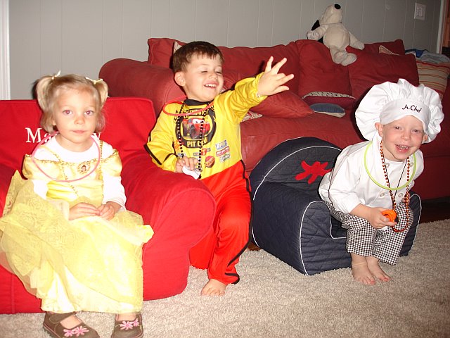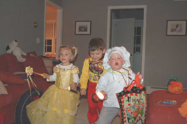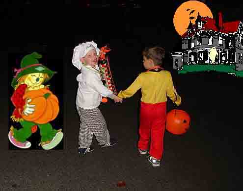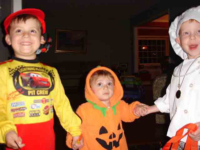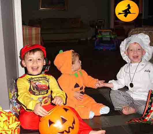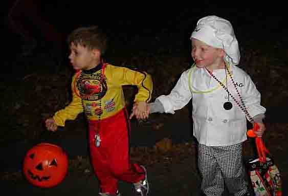 Matthew and Drew went Trick or Treating and got lots of candy.