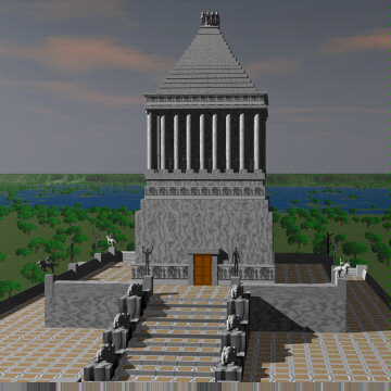 The Mausoleum of Maussollos, or Mausoleum of Halicarnassus was a tomb built between 353-350 BC at Halicarnassus (present Bodrum, Turkey), for Mausolus a provincial king in the Persian Empire, and Artemisia, his wife and sister. It was designed by the Greek architects Satyrus and Pythius.
