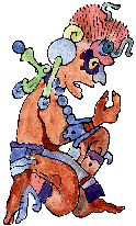 Itzamn: "Iguana House" - Principal pre-Columbian Mayan deity. The ruler of heaven, day, and night, he frequently appeared as four gods called Itzamnas, who encased the world. Like some of the other Mesoamerican deities, the Itzamnas were associated with the points of the compass and their colors (east, red; north, white; west, black; and south, yellow). Itzamna was sometimes identified with the remote creator deity Hunab Ku and occasionally with Kinich Ahau, the sun-god. The moon goddess Ixchel, patroness of womanly crafts, was possibly a female manifestation of the god. Itzamná was also a culture hero who gave humankind writing and the calendar and was patron deity of medicine.