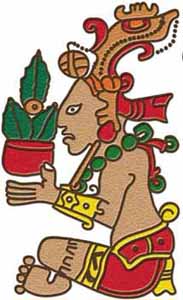 The Maize god is representative of the ripe grain which was the base of the Mayan agriculture. In certain areas of Mesoamerica, like Yucatan, the Maize god is combined with the god of flora, Yumil Kaxob. The Maize god is principally shown with a headdress of maize and a curved streak on his cheek. He is also noticeable from other gods throug his youth. Despite this youth, the Maize god was powerless by himself. His fortunes and misfortunes were decided by the control of rain and drought. The Rain god would protect him. However, he suffered when the Death god exercised drought and famine.