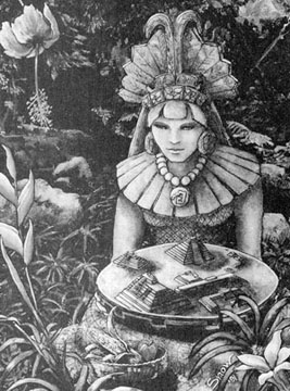 The Quichˇ Maya creation story is outlined in the Popol Vuh. This has the world created from nothing by the will of the Maya pantheon of gods. Man was made unsuccessfully out of mud and then wood before being made out of maize and being assigned tasks which praised the gods Ń silversmith, gem cutter, stone carver, potter, etc. Some argue this story adds credence to the belief that the Maya did not believe in art per se; all of their works were for the exaultation of the gods.