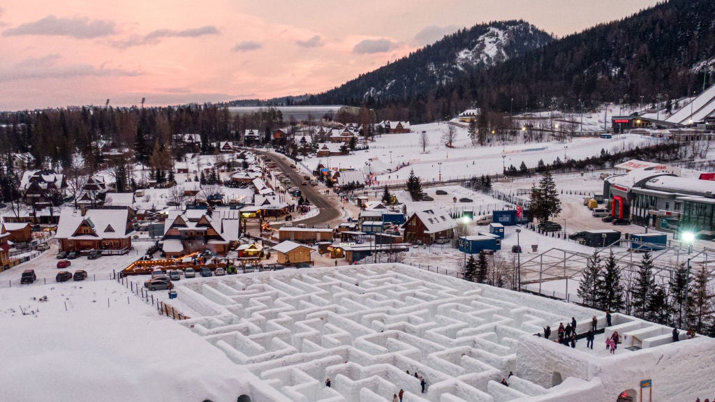 A giant snow maze advertised as the biggest in the world opened this week in Zakopane, Poland. 'Snowlandia' features a maze about the size of eight basketball courts and a giant igloo full of snow sculptures depicting cartoon characters. - Video ~ Weather.com - January 18, 2024