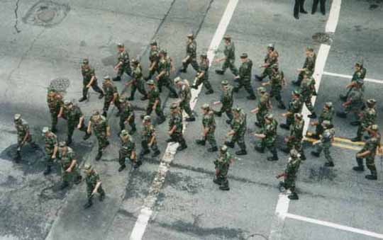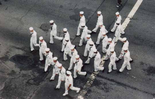 Over 3,500 sailors and marines can be seen walking in the streets of New York during Fleet Week 2004, May 26-June 2. This is in addition to the added security due to terrorist's threats.