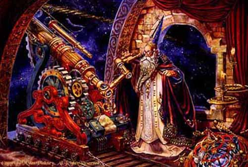 "Hello ladies.... It is nice to meet you. Let me tell you about creation. With a sweep of my hand, I created the sky, then the stars, the planets, and all of the objects you see in the sky. Ah...but there are many more things to behold. They go beyond your wildest imagination. The heavens are a magical kingdom which I monitor through the 'lens of time'."