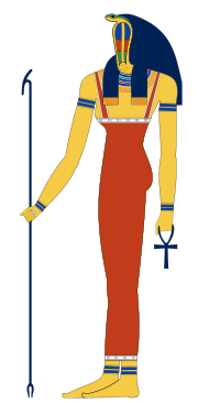 As a cobra, she spat poison at anyone who tried to vandalise or rob the royal tombs. She was also the patron deity of the many workers who built these tombs, and punished those workers who committed crimes, but healed those who repented. In art she was portrayed as either a coiled cobra, or as a woman-headed cobra, or rarely as a triple headed cobra, where one head was that of a cobra, one of a woman, and one of a vulture.