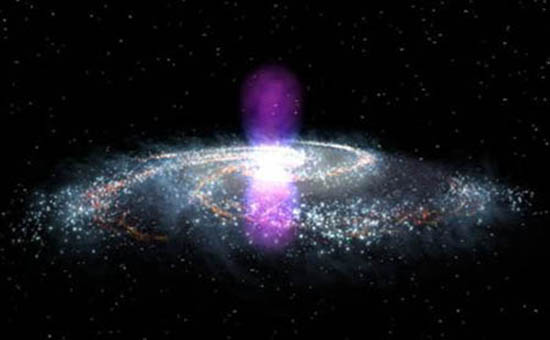 Compared to other galaxies, the Milky Way is a peaceful place. But it hasn't always been so sleepy. In 2010, a team of scientists working at the Harvard-Smithsonian Center for Astrophysics discovered a pair of "Fermi bubbles" extending tens of thousands of light-years above and below the Milky Way's disk. These structures are enormous balloons of radiation emanating from the center of our galaxy. They hint at a powerful event that took place millions of years ago, likely when the black hole at the center of our galaxy feasted on an enormous amount of gas and dust - perhaps several hundreds or even thousands of times the mass of the sun.