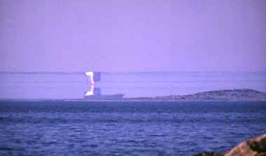 A mirage appeared off the shore of Penglai City in eastern China's Shandong Province on Sunday, May 7, 2005. Thousands of tourists and local residents witnessed a mirage of high clarity lasting for four hours off the shore of Penglai City in east China's Shandong Province on Sunday.