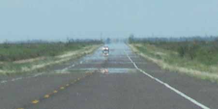 On tarmac roads, mirages give the impression that distant objects are being reflected by a puddle of water on the road.