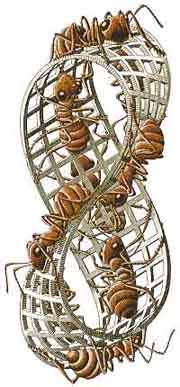 The Mobius strip has provided inspiration both for sculptures and for graphical art. The artist M. C. Escher was especially fond of it and based several of his lithographs on it. One famous example, Mobius Strip II, features ants crawling around the surface of a Mobius strip.