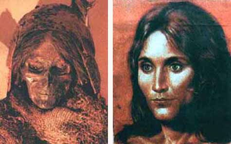 A man found with her (nicknamed "Conan") was also discovered, with tattoos of two monsters resembling griffins decorating his chest and three partially obliterated images which seem to represent two deer and a mountain goat on his left arm. The Ice Maiden has been a source of controversy, as alleged improper care after her removal from the ice resulted in rapid decay of the body; and since the breakup of the Soviet Union, the Altai Republic has demanded the return of various "stolen" artifacts, including the Ice Maiden, who is currently stored in Novosibirsk in Siberia. Two years after the discovery of the "Ice Maiden" Dr. Polosmak's husband, Vyacheslav Molodin, found a frozen man, elaborately tattooed with an elk, with two long braids that reached to his waist, buried with his weapons. Read More ...