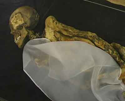 He was probably hanged using the rope around his neck. The noose left clear marks on the skin under his chin and at the side of his neck but there was no mark at the back of the neck where the knot was found. Due to skeletal decomposition, it is impossible to tell if the neck had been broken.