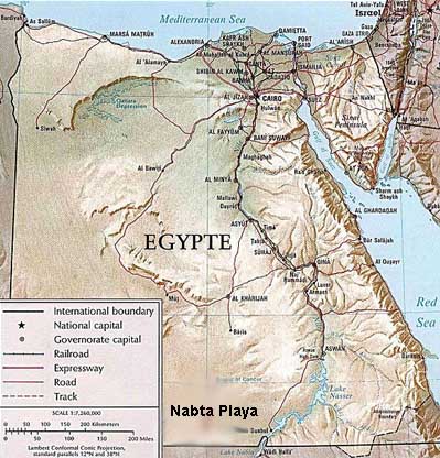 In 1972 a team of archaeologists made such a discovery while traveling through a remote region in southern Egypt. They were navigating by compass through a trackless waste known as the Nabta Playa and had halted for a water break, when they noticed potsherds at their feet. Fragments of old pottery frequently are an indicator of archaeological potential, and the team returned later to investigate. After several seasons of digging they eventually realized that Nabta Playa was not just another neolithic site. The breakthrough came when they discovered that what had looked like rock outcroppings were in fact standing megalithic stones.