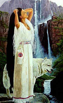 Then a woman fell from a torn place in the sky.. She was a divine woman, full of power. Two loons flying over the water saw her falling. They flew under her, close together, making a pillow for her to sit on.