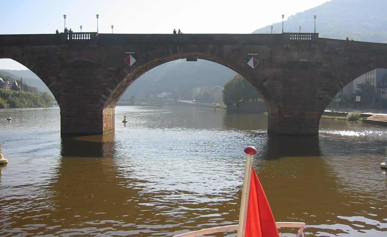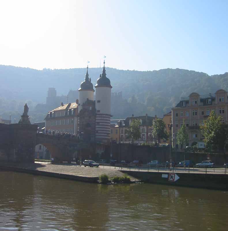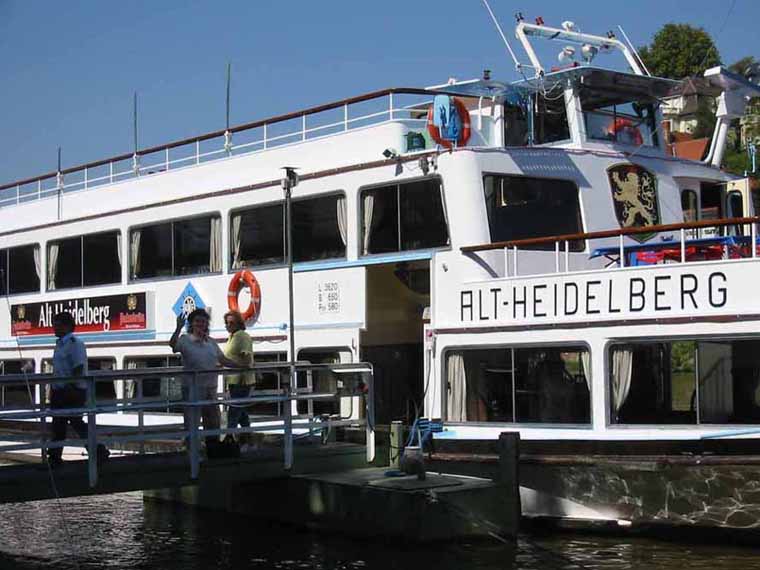The ships in Heidelberg generally make four trips a day. On this day, we arrived for the 10:15 cruise at 9:25 am. Just as we arrived, they announced that there was enough people to set sail at 9:30, an unscheduled voyage. Bon Voyage ... We met a woman from Ohio, at the ticket booth, who ran to get her family, waiting in a car nearby. I am not certain if they made the trip in time, but I doubt it. Parking is generally in parking garages below ground, marked with blue signs with a white letter 'P' on them and arrows giving directions. There were 13 parking garages in the city, at various locations, making it easy to park and sightsee, shop, eat or just hang out with friends.