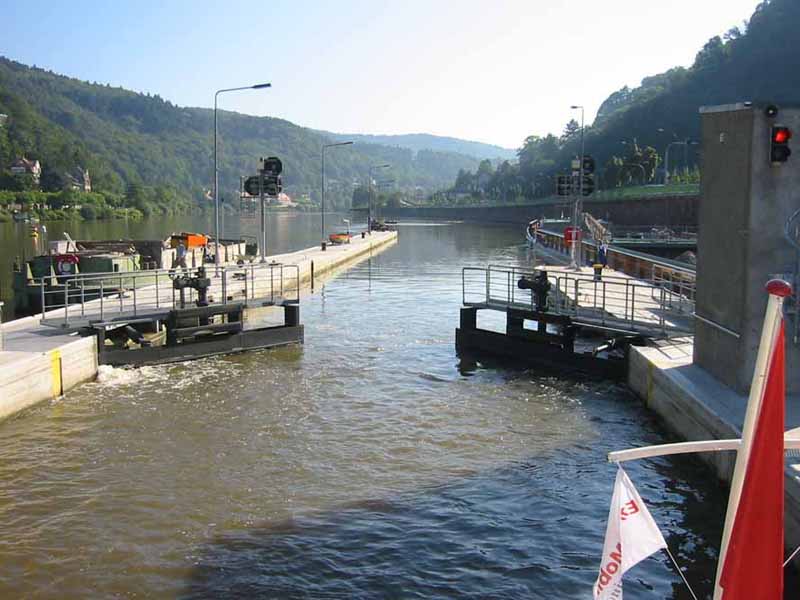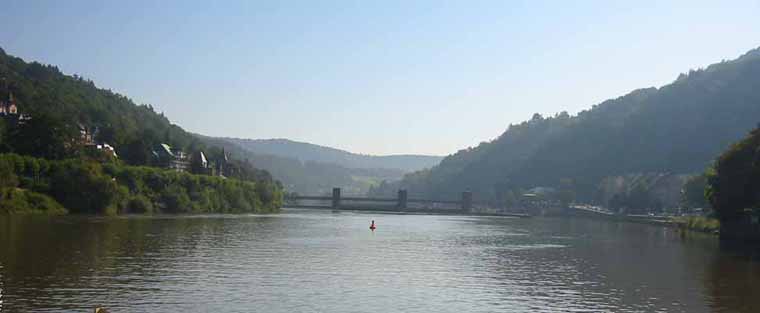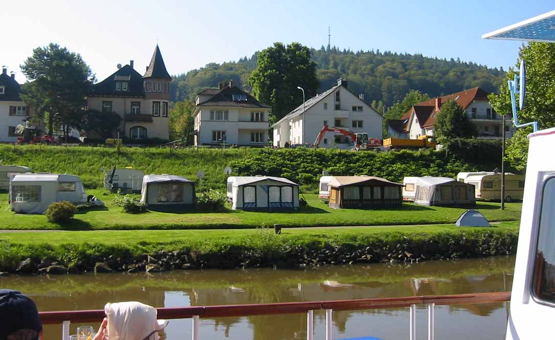 Pat and I took a relaxing three hour cruise along the Neckar River - a major tributary of the River Rhine, which it joins at Mannheim. Rising in the Black Forest, it flows through a steep valley in the Odenwald hills and passes through Tubingen, Nurtingen, Esslingen, Stuttgart, and Heidelberg. The total length of the Neckar from its source near Villingen-Schwenningen to the Rhine is 367 km. The Neckar is navigable for cargo ships up to the river port of Plochingen, about 200 km upstream from Mannheim.