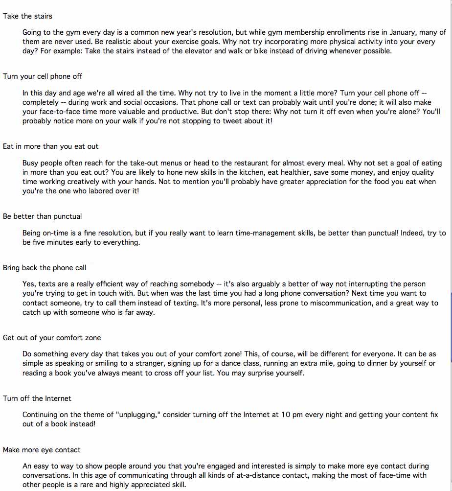 New Year's Resolutions That Aren't Losing Weight Huffington Post - January 2, 2012