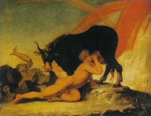 while she licks Buri from the ice in a painting by Nicolai Abildgaard (1790)