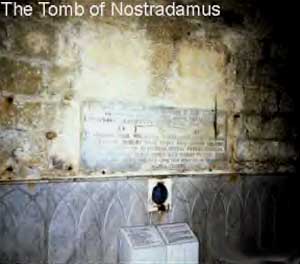 It was rumored that a very secret document existed in his coffin, that would decode his prophecies. In 1700, the coffin was moved to a prominent wall of the Church. Careful not to disturb his body a quick look inside revealed an amulet on his skeleton, with the year 1700 on it. One night in 1791 during the French Revolution, soldiers from Marseilles broke into the church, in search of loot. The next morning they were ambushed by Royalists. The soldier who had used Nostradamus' skull as a wine glass, the night before, died by a sniper's bullet.