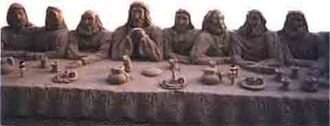 In the sandpainting of southwestern Native Americans (the most famous of which are the Navajo), the Medicine Man paints loosely upon the ground of a hogan, where the ceremony takes place, or on a buckskin or cloth tarp, by letting the colored sands flow through his fingers with control and skill. There at least 600 to 1000 different sandpaintings that are recognized among the Navajos. They are not viewed as static objects, but as living things that should be treated with great respect. There may be more than thirty different sandpaintings associated with one ceremony alone.
