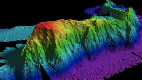 Startling new images from the depths of the Pacific Ocean reveal one of Earth's most violent processes: the destruction of massive underwater mountains. The pictures were created by sonar in waters up to 6km (4mi) deep. They expose how tectonic action is dragging giant volcanoes into a chasm in the seabed. The volcanoes are strung across several thousand kilometres of ocean floor and are moving westward on the Pacific tectonic plate at up to 6cm per year. The extraordinary scene was captured along the Tonga Trench during a research expedition last summer.