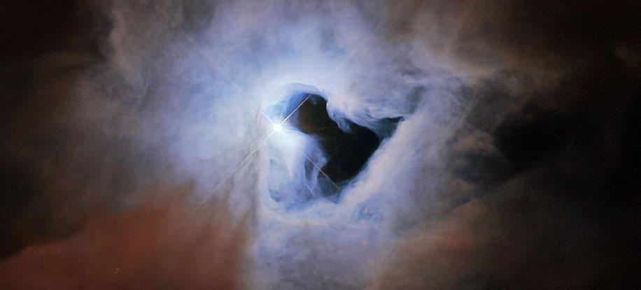 Described as a "cosmic keyhole" by experts, the phenomenon caught by the telescope is what's known as a reflection nebula - part of the debris left behind by the formation of a newborn star, or in this case, a small, multiple star system known as V380 Orionis in the constellation Orion.