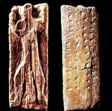 The oldest image of a star pattern, that of the famous constellation of Orion, has been recognized on an ivory tablet some 32,500 years old. The tiny sliver of mammoth tusk contains a carving of a man-like figure with arms and legs outstretched in the same pose as the stars of Orion.
