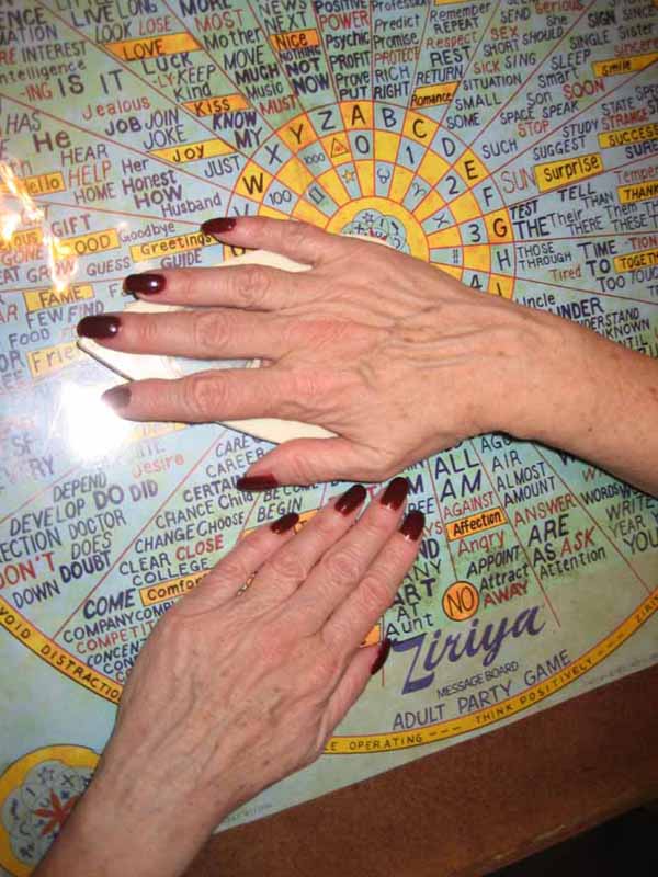 So there we were, George and I, seated at the table, the ouija board in front of us, waiting to see who would show up to play. As I multitask here and above, I knew Z was ready.