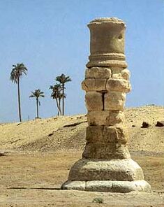 When Flinders Petrie visited Oxyrhynchus in 1922, he found remains of the colonnades and theater. Now a single column meets the eye: everything else has been scavenged for building material for modern housing.