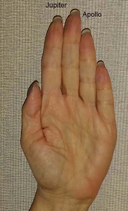 Wednesday I found the article below but wanted to take a photo of my palm before writing a blog and needed to find someone to capture the image. Today my porter, John got the prefect photo though I'm not sure why my nail polish shows through my nails ... never mind ... not important. So here we go ... I love palmistry and create a palm print for clients who have a reading here. The palm is not just about the lines, but about the fingers - their proportion to each other, the way they bend, their width, the length compared to the length of the palm, and more. The most important finger for me is the Jupiter finger which shows leadership, teaching abilities, strength, control, finding oneself early in life, and more. I compare the Jupiter and Apollo fingers for answers. The longer the Jupiter finger is ... the stronger the attributes just mentioned. In astrology Jupiter rules Sagittarius a powerful fire sign.
