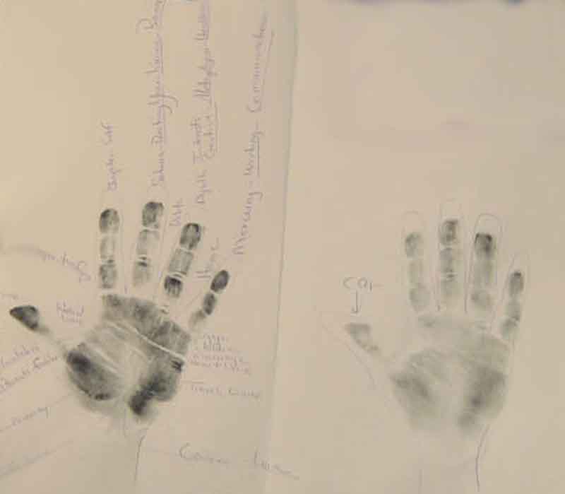 The client washes their hands and I label everything on the palm chart. We are now ready to discuss what it says.