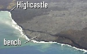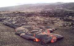 Kilauea lies at the southeast end of the Hawaiian chain. It is the youngest major shield now protruding above sea level, but much of its bulk is under water. The subaerial part of Kilauea covers approximately 1,500 square kilometers. Its modern caldera contains an annulus of accurate blocks stepped downward toward an inner sink, which is partly filled by a lava shield indented by Halemaumau crater. The modern caldera is thought to be nested within the buried rim of an older caldera. Two rift zones radiate from the summit. Two rift zones radiate from the summit. Kilauea probably began to grow about 200,000 years ago, and the oldest flows of Hilina Basalt now exposed in the fault scarps of the subaerial south flank probably date from 50-100 thousand years ago.