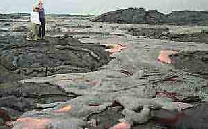 The timeline for Kilauea formation is not known, but various estimates are 300,000-600,000 years ago. It is believed that the volcano has been active ever since, with no prolonged periods of quiescence known. Geologic studies of surface exposures, and examination of drill hole samples, show that Kilauea is made mostly of lava flows, locally interbedded with deposits of explosive eruptions. Probably what we have seen happen in the past 200 years is a good guide to what has happened ever since Kilauea emerged from the sea as an island perhaps 50,000-100,000 years ago.