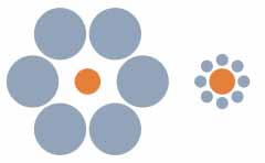 The Ebbinghaus Illusion. Most people will see the first circle as smaller than the second one Researchers found a strong link between the surface area of the primary visual cortex and the extent to which volunteers perceived the size illusion -- the smaller the area, the more pronounced the visual illusion.