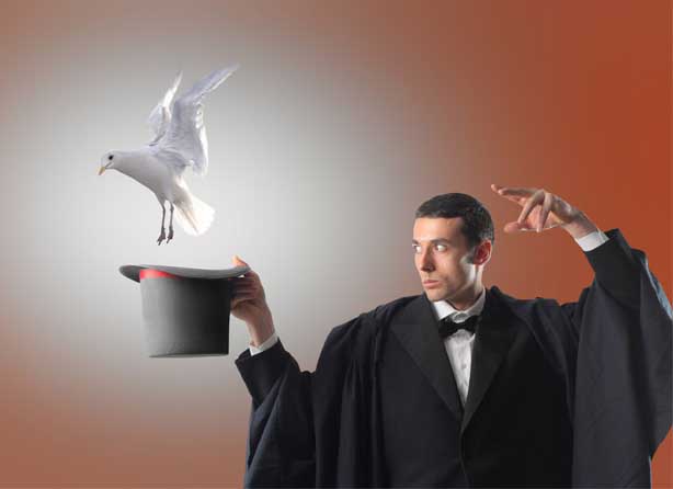 Perception and Deception; In the classic Hat-trick - a performer will produce an object (traditionally a rabbit or a bouquet of flowers) out of an apparently-empty top hat.