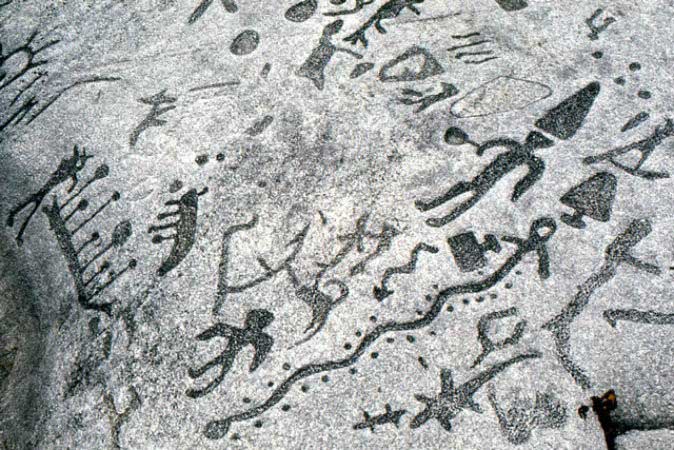 Hundreds of petroglyphs are etched on a slab of crystalline limestone about 180-by-100 feet (a third the size of a football field) in Peterborough, Canada. They may have been left by Algonquin Native Americans about a thousand years ago, or by Scandinavian traders a few thousand years ago. The latter claim flouts the common understanding of history, which places Europeans in the New World much later. But it has had a few prominent supporters. They say that the depictions of animals, solar symbols, geometric shapes, boats, and human figures on the so-called Peterborough Stone reflect a style used in the Old World.