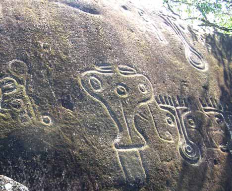 The rocks include both simple carvings - such as straight lines and swirls to more complex identifiable designs that resemble trees, flowers - and like other glyphs around the world seem to tell a story - repeated throughout time.