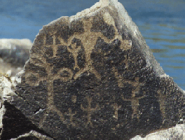 Petroglyphs are images carved into rock that presume to tell a story of perhaps ancient astronauts or giants who visited planet Earth in the distant past - their stories carved in stone. Found throughout the world they are often associated with creation myths told and retold to this day by indigenous people. They are stories about gods who descended from sky and created or interacted with a race later to be known as humans.