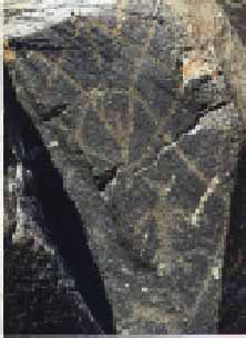 The majority of the Coso Range images fall into one of six categories: bighorn sheep, entopic images, anthropomorphic or human-like figures (including animal-human figures known as pattern-bodied anthopomorphs), other animals, weapons & tools, and Òmedicine bagÓ images.