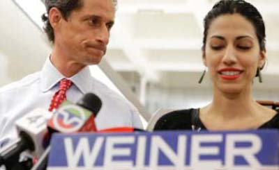 Knowing there were other videos out there, he really has balls to seek election at a time Americans hope their elected officials are straight shooters and scandal free. Seriously? That will never happen. The games of politics are always laced with deception and intrigue, sex being a "key" part of it. These men work hard and "play hard" - and like many of us, outgrow the partner we started with - moving on with our next karmic relationship. Tuesday it all hit the fan for Weiner - putting him back on the front page - this time dragging his wife into the mix. This marriage is so doomed. I wonder if Bill (Clinton) advised her to stay? This reaps of money and power.