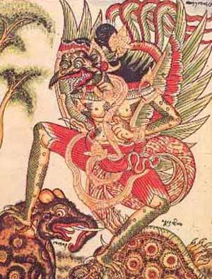 In Hindu mythology we find the Garuda. He is depicted having the beak, wings, talons, and tail of an eagle, and the body and legs of a man (sometimes having four arms). Garuda was semi-divine, as he was the mount of Vishnu. Garuda personifies the sun, as well as being the enemy of snakes.