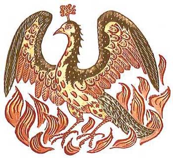 In ancient Egyptian mythology and in myths derived from it, the Phoenix is a female mythical sacred firebird with beautiful gold and red plumage. Said to live for 500 or 1461 years (depending on the source), at the end of its life-cycle the phoenix builds itself a nest of cinnamon twigs that it then ignites; both nest and bird burn fiercely and are reduced to ashes, from which a new, young phoenix arises.