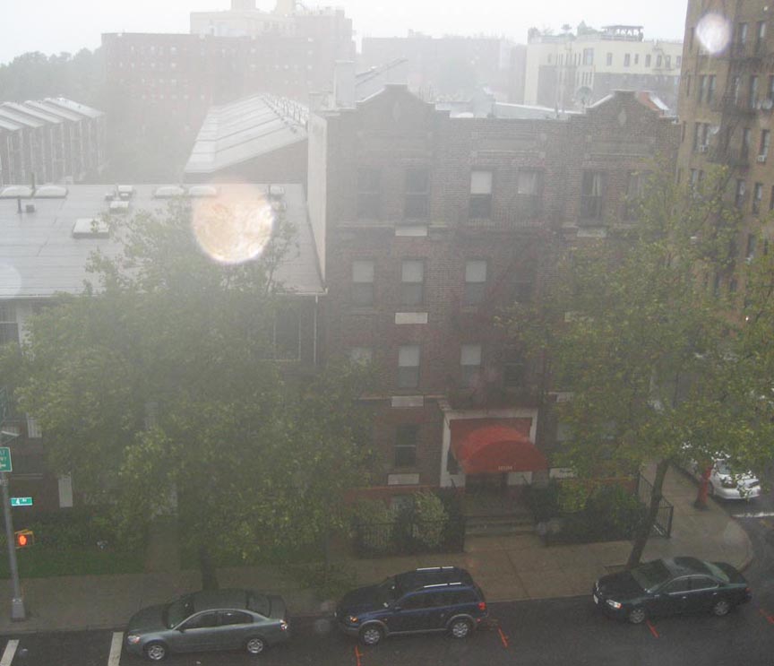 The image artifacts usually appear as either white or semi-transparent circles, though may also occur with whole or partial color spectrums, purple fringing or other chromatic aberration. With rain droplets, an image may capture light passing through the droplet creating a small rainbow effect.