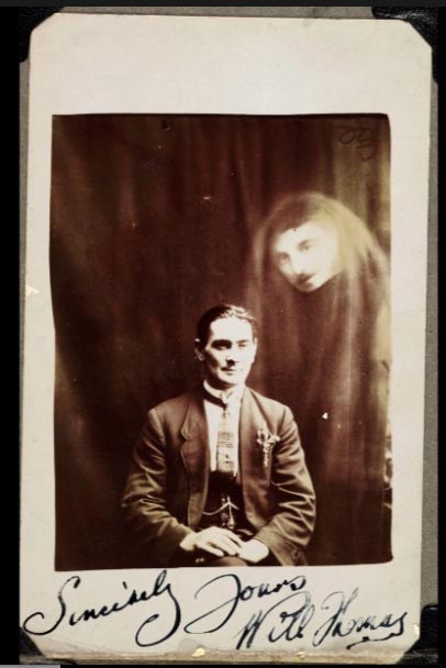 Ellie's superposed photo - I took the photo above after reading a client named Gloria in my home August 26, 1989. She was doing automatic writing. The superimposed image over Gloria is me standing in my pyramid taken at a psychic fair a few months earlier.